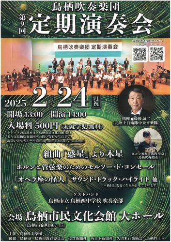 お知らせ 2025.02.01 当スタジオのご利用者様からのお知らせです。 鳥栖吹奏楽団 第9回 定期演奏会 日時:2025年2月24日 13:00開場/14:00開演 場所:鳥栖市民会館 大ホール 入場料:500円 詳細は添付写真をご覧ください。 ご来場お待ちしております!